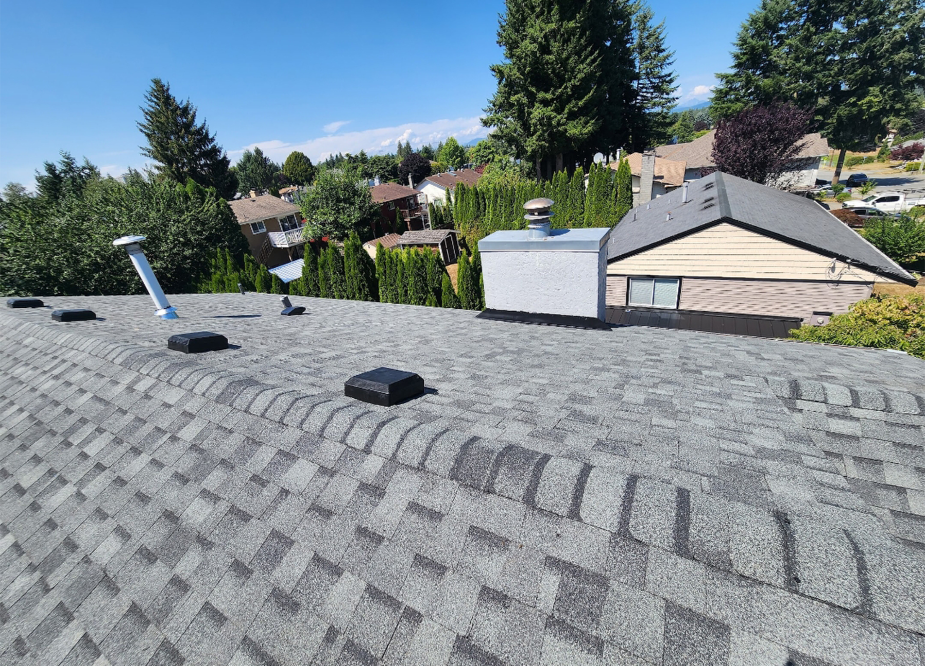 Our team can replace and dispose of the old shingles. Once the shingles have been removed from your roof, we will perform a full roof inspection to check for any soft spots or rot that our team will need to fix before the new roof is laid. We will then use a full synthetic underlay around the whole roof before installing new top-of-the-line asphalt shingles. Our team will also take care of replacing any vents, skylights, b vents, or lead, as needed, and will perform a full cleanup of the roof so that no nails or shingles are left behind.
